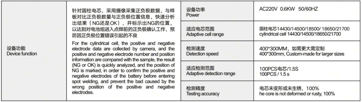 一、BT-CCD01電芯正負(fù)極檢測(cè)機(jī)參數(shù)